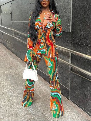 Abstract Printed Sheer Bodycon Pant Sets